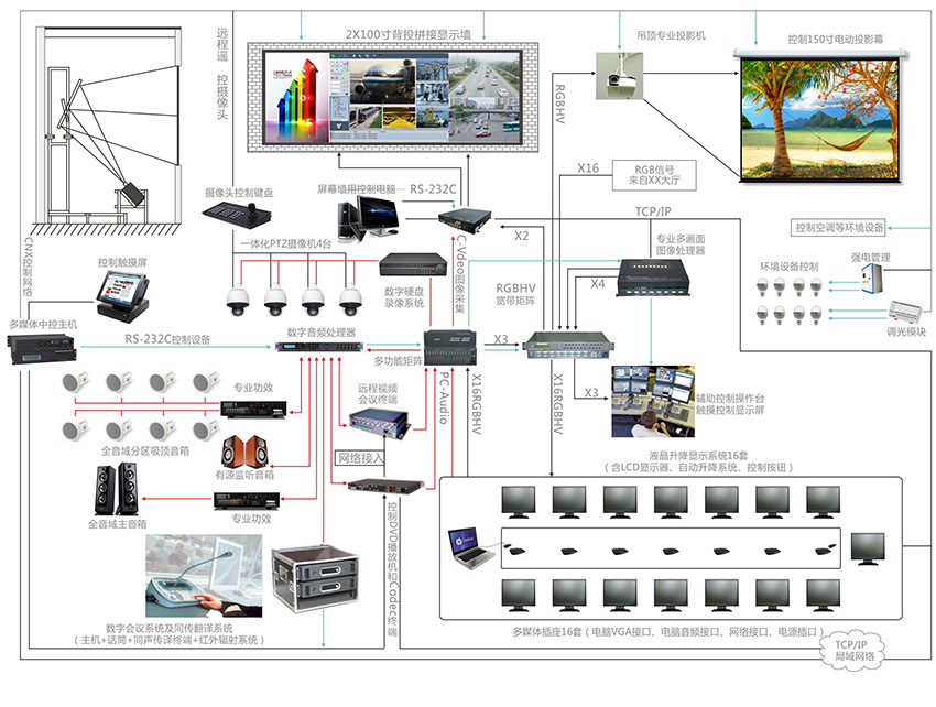 系統(tǒng)的設(shè)計思想是現(xiàn)代化、高起點、高質(zhì)量、高可靠性、高完整性。即具備現(xiàn)代化大廳的各種使用功能,又可以完成高質(zhì)量的視聽節(jié)目播放等特殊使用要求,高度自動化的操控方式使其具備各種功能任意選用的特點。